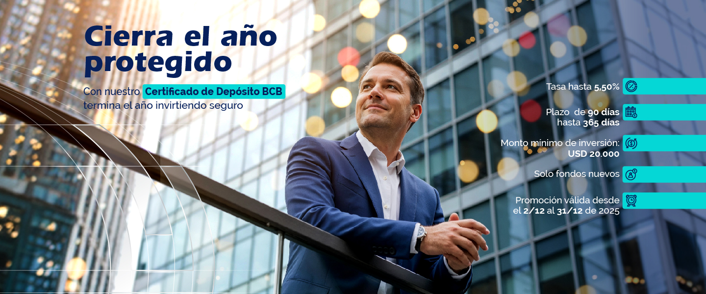 Nuestros certificados de depósito, en dólares o euros le permiten a tu empresa rentabilizar sus fondos, al generar intereses según el plazo y la tasa acordada.